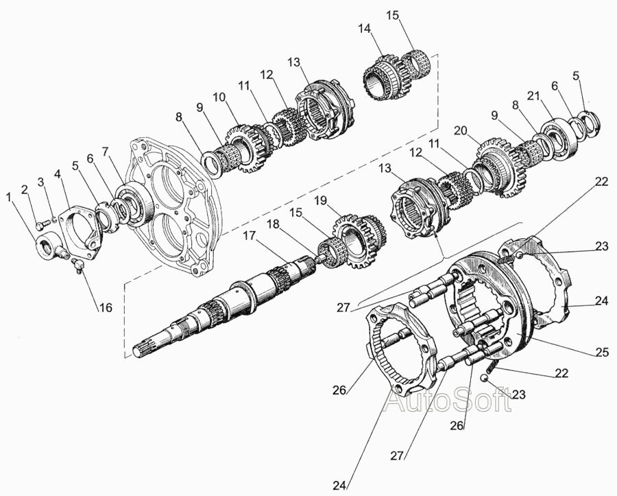 На рисунке позиция №4 (Узел коробки передач МТЗ-1005).